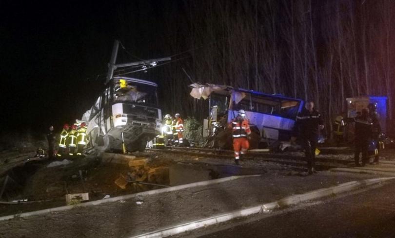 Катастрофата станала на железопътен прелез довечера в Мийас, до френско-испанската граница. Министърката на превоза Елизабет Борн разказа в Туитър конфликта като " ужасна злополука " и добави, че незабавно потегля към мястото - на повече от 850 км южно от Париж. От офиса на префекта (областния управител) на Перпинян и от националната жп компания към този момент не разясняват аргументите за злополуката.
