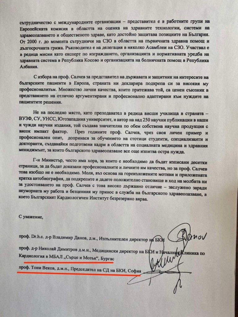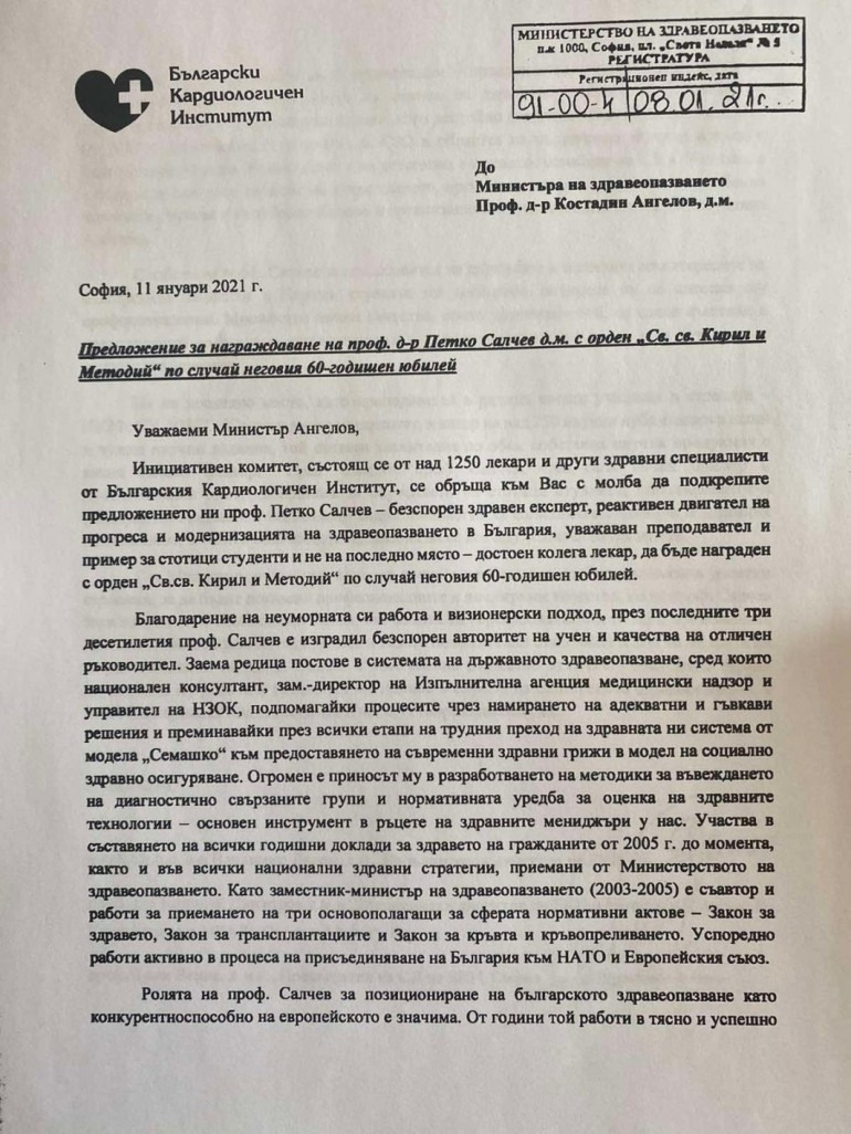 Поредната случайност в процеса по откриването на частната болница. И още една случайност - през април проф. Салчев получи от президента Радев медал „ Св. св. Кирил и Методий ” за изключителни заслуги за развиването на опазването на здравето. За огърлието го предлагат Тони Веков и редица началници на клиники от „ Сърце и Мозък ”.