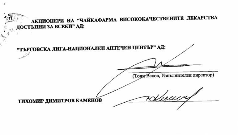 Най-новата глава от историята за „ Чайкафарма ” или за така наречен „ чайки ” в бизнеса със опазване на здравето стартира преди няколко месеца. Началото на сагата съответствува с назначението на Стойчо Кацаров за министър. Случайност? Няколко седмици, откакто Кацаров поема кормилото на родното опазване на здравето, в подопечното му министерство идва писмо от Многопрофилната болница за интензивно лекуване „ Сърце и Мозък ” ЕАД. В документа сдружението моли да му бъдат позволени нови медицински действия на адрес в село Казичене. Молбата към министерството идва дни, откакто районният кмет на Панчарево Григор Григоров се е похвалил във Facebook, че напълно скоро се чака да стартира градежът на голяма болница с 14 отделения, измежду които педиатрия и хеликоптерна площадка в село Казичене. Инвеститор е „ Чайкафарма ”. В кметството били подадени документи за градежа. С други думи, още преди да е получила публично позволение за здравна активност, „ Чайкафарма ” започва паралелно процедура за градеж на постройката си. Откъде вложителят знае, че ще получи „ зелена светлина ” от здравните управляващи? Или пък знае и мачът е организиран? Любопитен синхрон. Друга случайност. Сигурно се объркахте - Многопрофилна болница за интензивно лекуване „ Сърце и мозък ” ЕАД и „ Чайкафарма ”. Какво общо имат? Едноличен притежател на капитала на Многопрофилната болница за интензивно лекуване „ Сърце и мозък ” ЕАД е Търговска лига - Глобален аптечен център. Акционери в Търговска лига са Тихомир Каменов и сина на същия Тихомир Каменов, който е подписан от татко си, в качеството си на негов родител. Това сочи справката в Търговския указател.