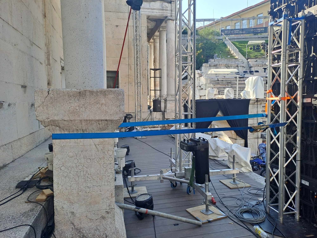 Най-ранният надпис, даващ информация за Филипопол, градските институции, основаването на Общото заседание на провинция Тракия и водещата роля, която градът получава по времето на император Домециан, се трансформира в опора за плантация, която е част от инфраструктурата на спектакъла " Нощ на звездите ". Събитието би трябвало да се организира довечера от 20:30 часа на античната сцена и макар заявката на уредника Енчо Керязов, че археологическата недвижима културна полезност от национално значение по никакъв метод няма да бъде повредена и всичко, което се случва, ще е в границите на актуалната сцена, фотосите демонстрират друго.