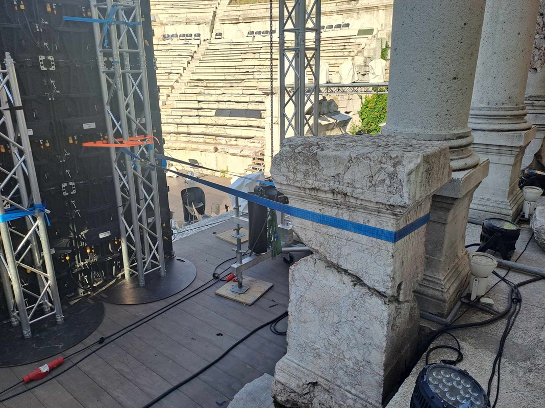 При инспекция тази заран стана ясно, че въпросните ленти, които бяха захванати за колоната, са отстранени. По думите на експерти, които от години работят на Античния спектакъл, най-вероятно става дума за краткотрайно подсилване при монтажа. Независимо от това даже и краткотрайно сходни намеси са неприемливи.