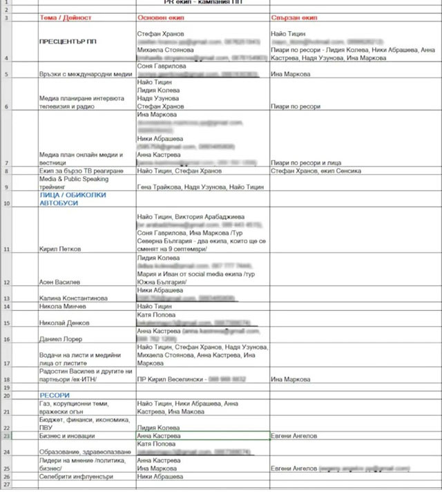 Освен листата с лицата от PR екипа обаче, медията пусна и дълъг лист с „ опорки “, които били раздадени на представителите на Политическа партия.