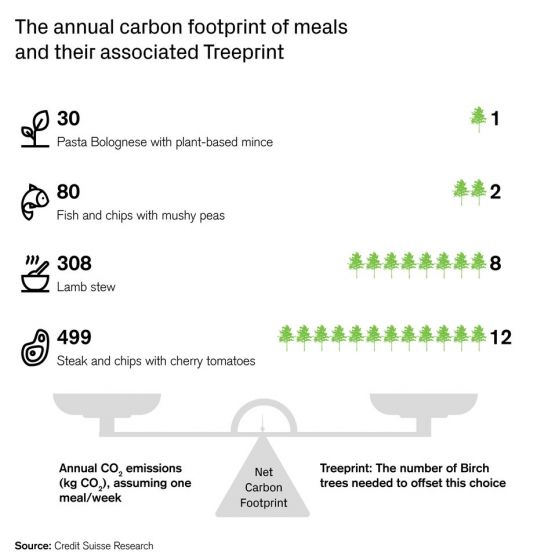 Ако решите, че не желаете да променяте навиците и менюто си, имате избор – можете да засадите избран брой дървета годишно, с цел да компенсирате въглеродния отпечатък, който оставяте с избора си на храна. Не е належащо да се отказвате от пържолите, стига в края на всяка година да засаждате по 12 дървета за изядените от вас.