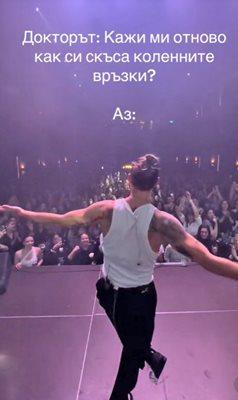 Папи Ханс е скъсал коленни връзки, научи преди всички " България Днес ". Певецът даже загатва, че тази контузия не му се случва за сефте. Когато лекарят го попитал по какъв начин още веднъж се е подредил по този начин, изпълнителят на " Кекс " посочил клипче от собствен концерт.
