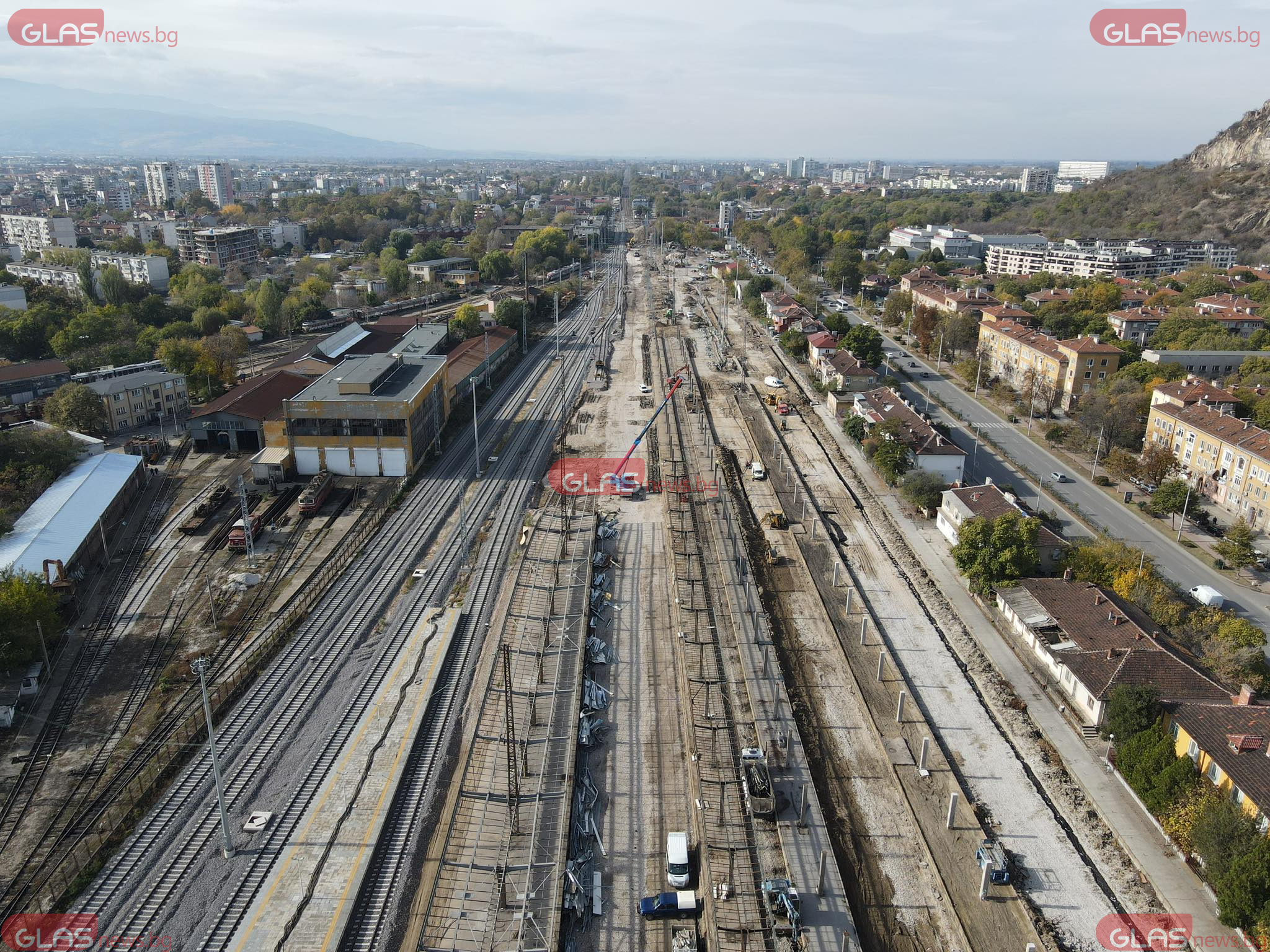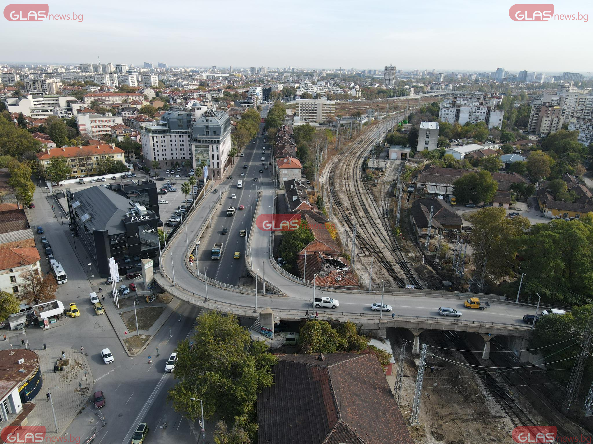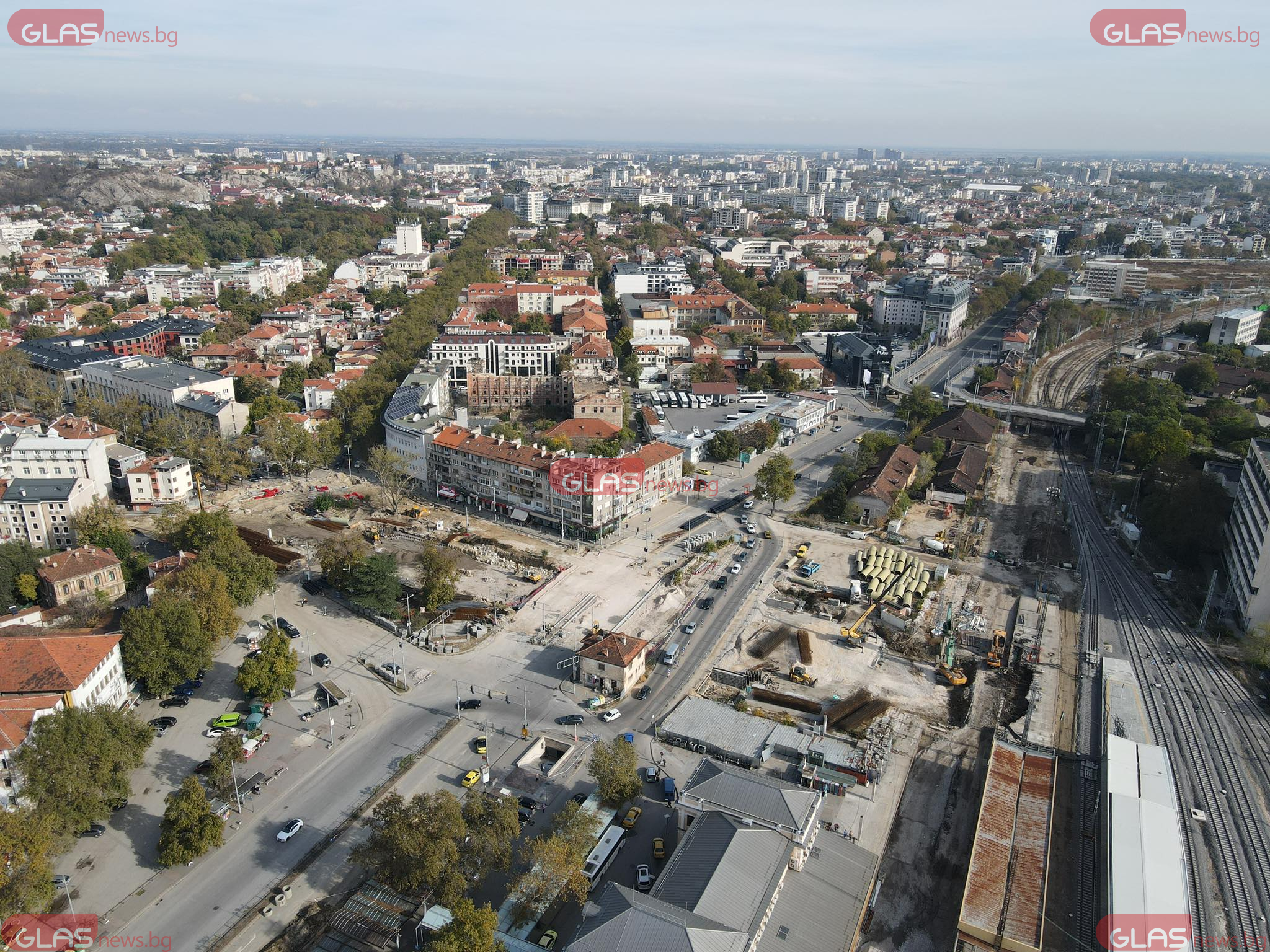 А северно и южно от Централна гара повърхност от към квадратен километър по-скоро наподобява на ударена от тежка бомбардировка. Няма ги няколко от коловозите пред гарата, челните коловози напълно липсват. Движението по бул. „ Христо Ботев “ едвам диша като при астматичен припадък. Северно от гарата, там където се въртеше кръгово придвижване, е ситуиран склад за строителни материали. Дори от птичи взор не може да бъде обхваната сложността на огромното строителство. Няма по какъв начин да надникнем в пробива под релсовия път, който ще свърже бул. „ Васил Априлов “ и бул. „ Македония “. Около половин километър, нещо като права на метро с подходи към жп гарата, двете автогари „ Юг “ и „ Родопи “, спирките на градския превоз. Преди това да се случи – нов тръбопровод по цялото трасе, канализация, отводнителни шахти, кабелна мрежа. Сложно и времеемко.