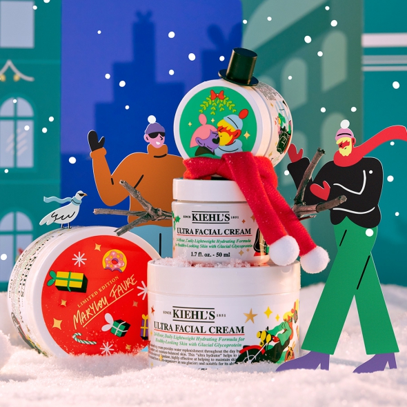 Празничният сезон не е цялостен без най-продавания номер едно крем за лице на Kiehl’s –сега декориран с причудливи герои и празнични изображения! В стила на Kiehl’s тази неповторимо лека и подхранваща формула е ултратествана и потвърдено обезпечава трайна 24-часова хидратация, даже и в най-екстремните условия.