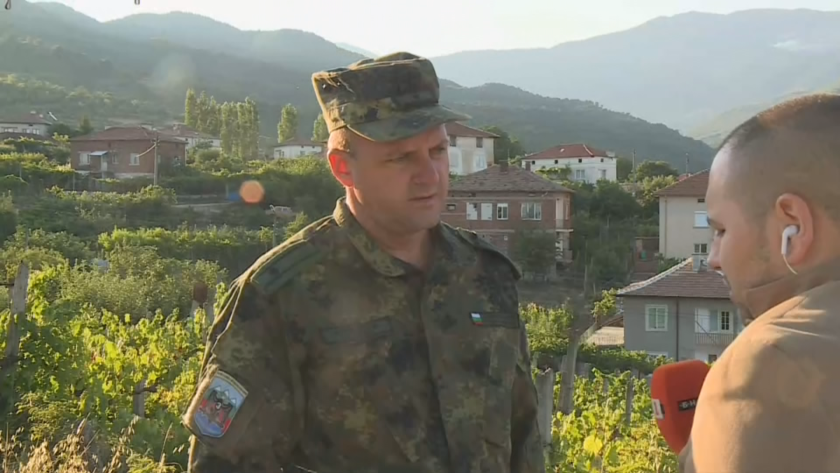 " Вече четвърти ден сме на терен, локализиран е пожарът. Ще разположим хората единствено за наблюдаване и при вероятно разпалване на пожара и разширение на огнища, тогава ще работят на терен. Разположени са сред 93 и 92 пирамида единствено по граничната вадичка, няма заплаха за хората, които са на терен ", означи майор Борислав Войнов - ВРиД - пълководец на Трето бригадно поделение - Благоевград.