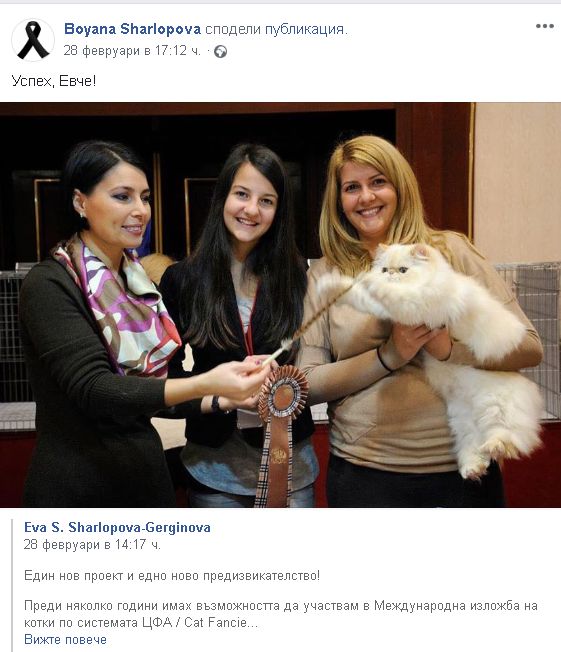Боряна реши да показа обява на Ева и написа „ Успех, Евче! “. Под фотографията имаше следния текст, който бе споделен от профила на щерката на Шарлопов: