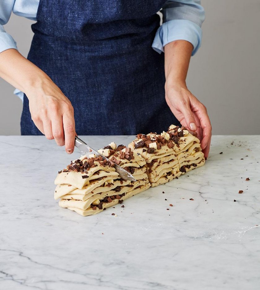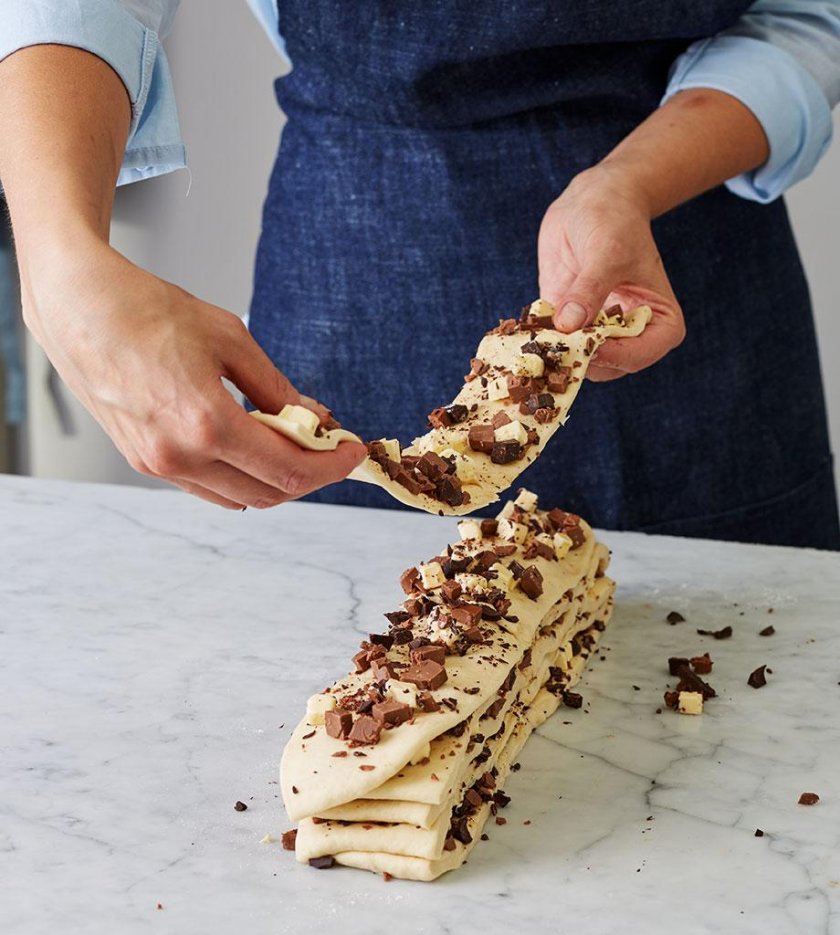 Предлагаме по какъв начин да се подготви малко по малко този изваян самун във вид с лешници и шоколад. А за по-лесно печенето е в продълговата форма.