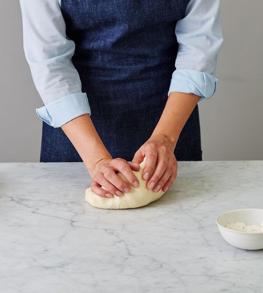 Втасалото тесто се размесва още веднъж на безпрепятствено тесто с поръсване на малко брашно.