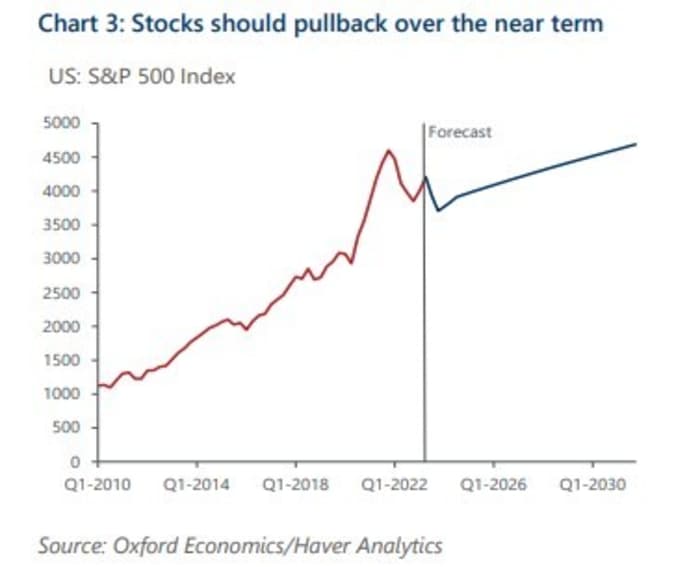 Не се тормозете прекалено много, в случай че показателя S&P 500 засенчи границата от 4500 пункта, тъй като рецесията в Съединени американски щати към момента наподобява евентуална, съгласно Джон Канаван, водещ американски анализатор в Oxford Economics.Доходността на облигациите се намали, акциите се покачиха и доларът потъна до най-ниското си равнище от април 2022 година в сряда, откакто потребителските цени в Съединени американски щати се охладиха повече от предстоящото през юни, добавяйки към очакванията Федералният запас скоро да приключи повишението на лихвите цикъл.Възходящите тонове по отношение на възможностите на Фед да сътвори меко кацане за стопанската система на Съединени американски щати, като в същото време укроти високата инфлация посредством по-високи лихвени проценти, биха могли да вдигнат S&P 500 назад над 4500 през идните месеци, сподели Канаван в потребителска записка от сряда.Той обаче счита, че икономическото закъснение, което стартира по-късно тази година, ще попречи на S&P 500 да се върне към рекордния си връх от 2022 година Фондовият пазар също евентуално ще загуби позиции по-късно през 2023 година и ще се бори за облаги през идващото десетилетие (виж графиката).