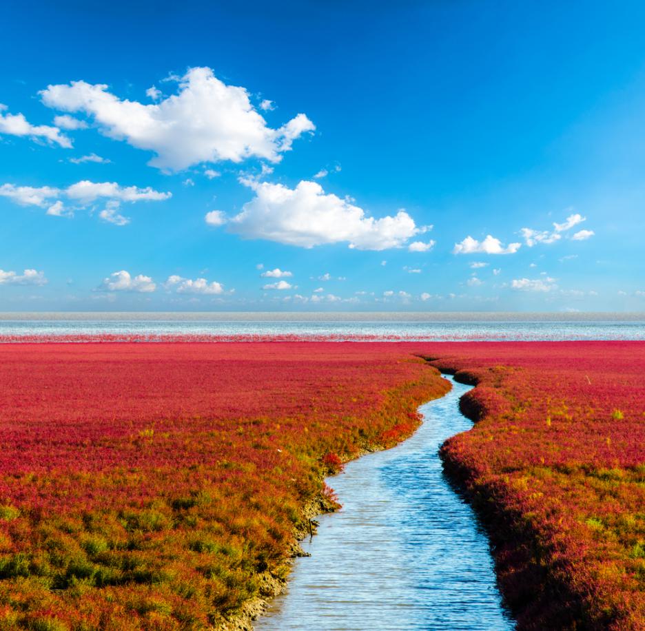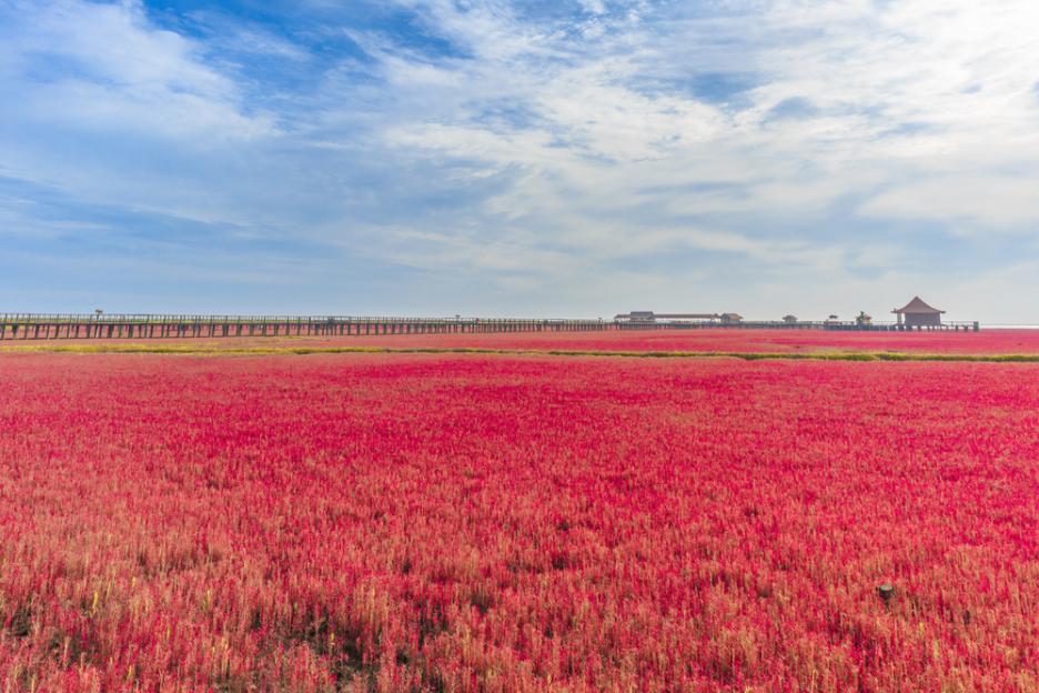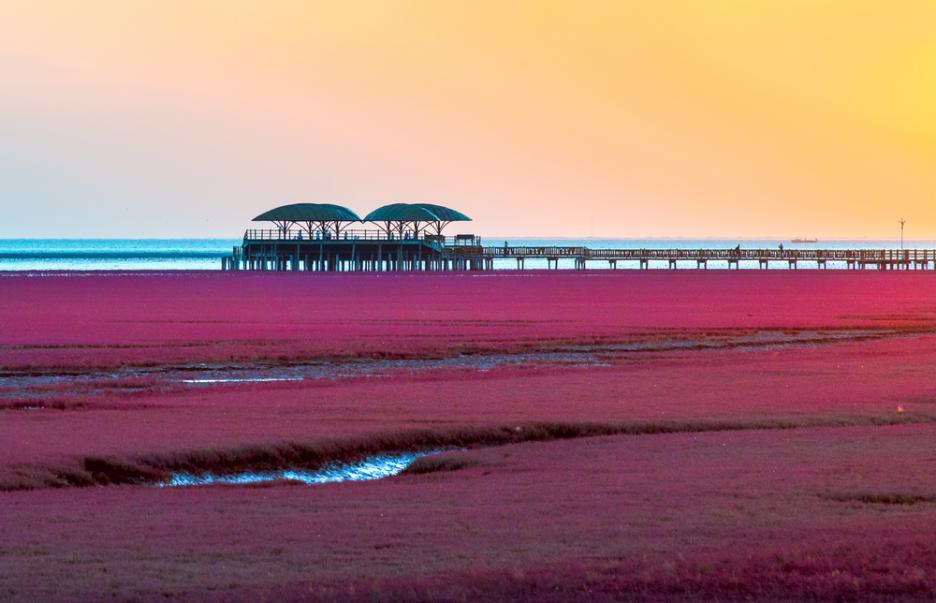 Не инцидентно аленият плаж в Панджин, Китай е една от най-удивителните естествени забележителности. Трудно можете да забележите неговия пясък, защото съвсем цялото място е покрито с алена растителност, написа obekti.bg.