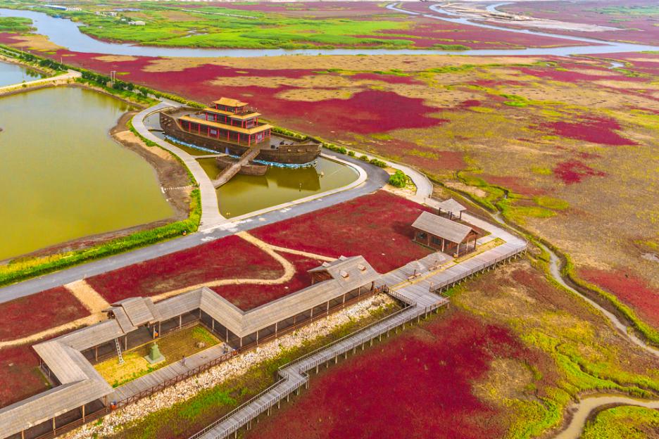 Червеният плаж се намира на към 30 км югозападно от град Панджин, който е прочут като третото по благосъстояние на нефт място в Китай.