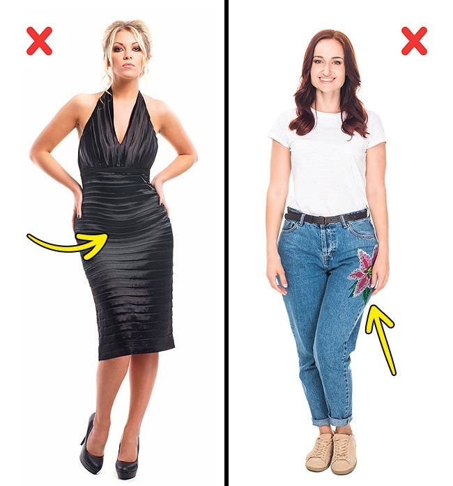 Понякога девойките се пробват да скрият проблематична област, като я покриват прекалено. Това в действителност води до противоположното на стремежи резултат, защото тези области просто притеглят повече внимание. Например, в случай че не ви харесва метода, по който наподобяват бедрата, не носете дънки с огромни джобове или никакви картинки или илюстрации. Колкото по-малко внимание обръщате към проблематичната област, толкоз по-добре ще бъде това за външния ви тип.