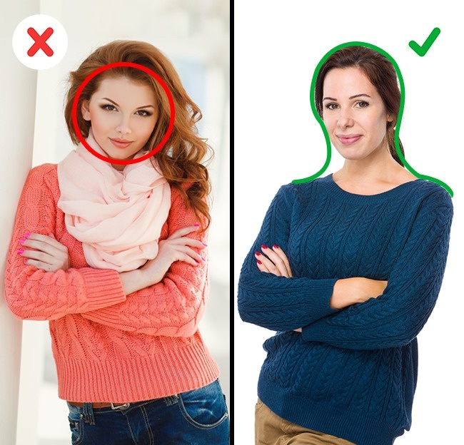 Шалоете и пелерините могат да стопят типа ви напълно. Яките, които са кръгли или V-образни са най-хубавият избор. Също по този начин, оставете 2-3 копчета, които са разкопани, покрай зоната на врата.