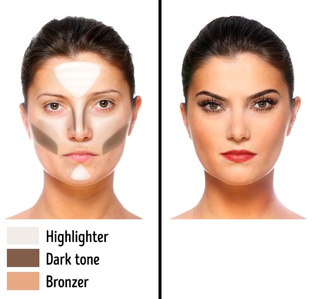 Контурът прави лицето ви да наподобява по-тясно и даже може да скрие двойната брадичка. Трябва просто да научите по какъв начин да употребявате тъмните и светли тонове вярно. Основното предписание, което би трябвало да запомните, е да затъмните всичко, което желаете да скриете, и да направи по този начин, че всичко, което желаете да наблегнете, да изпъкне.