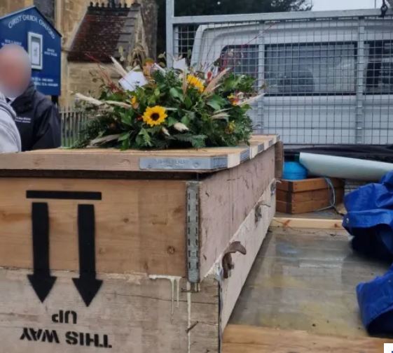 Не всеки ден може да се види ковчег, изработен от дъски за кофраж, и превозен до погребението на гърба на камион.