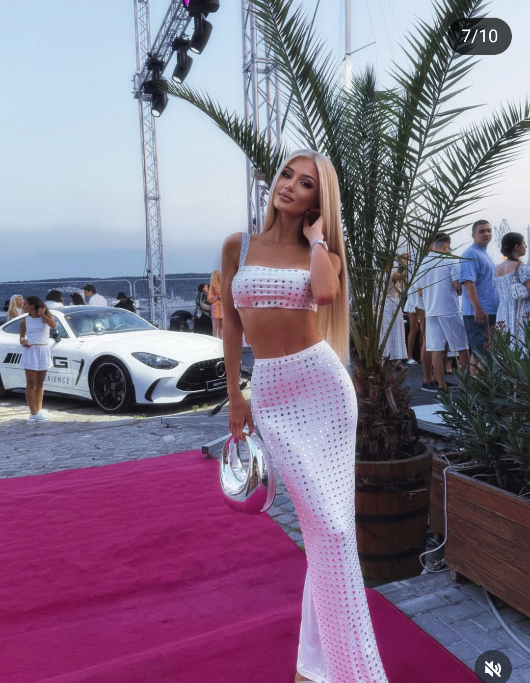 Бившата обичана на рапъра Атанас Колев е изтупана като нимфа, в звук с морето зад тила й. В ръката си горещата мацка държи футуристична чантичка.