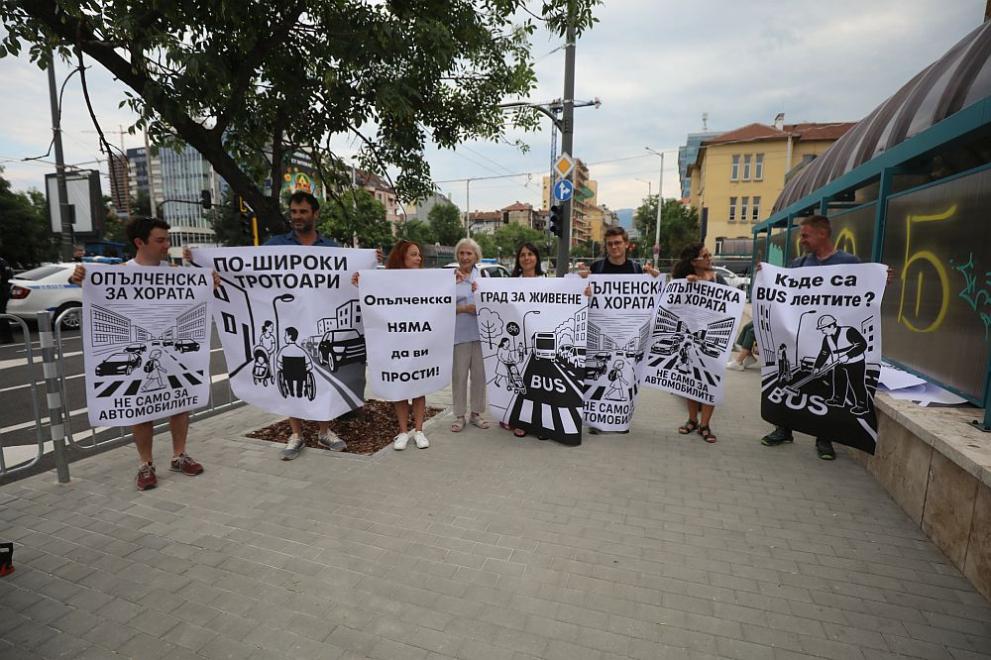 С плакати с надписи “Опълченска за хората, освен за колите “, „ По-широки тротоари “, „ Къде са bus лентите? “, „ Град за живеене “, „ Опълченска няма да ви елементарни “ протестиращите се събраха на кръстовището на ул. „ Опълченска “ и бул. „ Тодор Александров “.