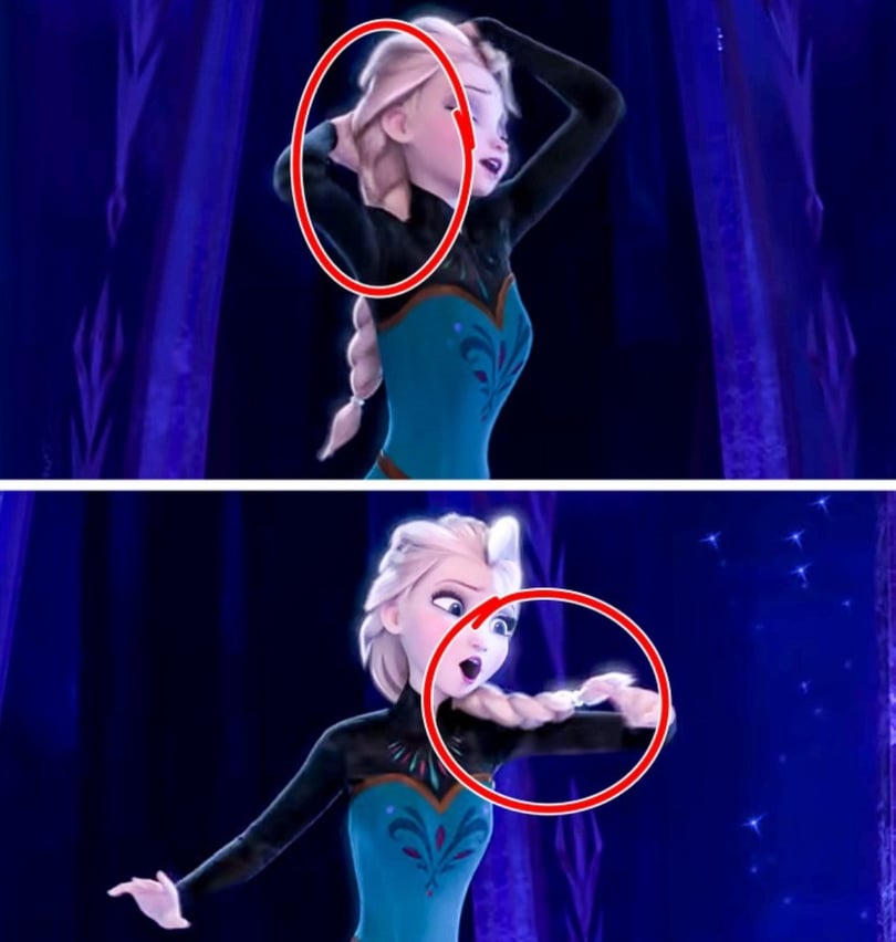 Песента „ Let It Go “ бележи повратна точка както в сюжета, по този начин и за Елза в „ Замръзналото кралство “. Когато принцесата пуска косата си, тя дърпа плитката си в обратна посока, само че без тя да мине през рамото ѝ.