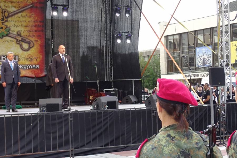 Тази вечер президентът Румен Радев посети Благоевград, където взе участие в тържествената гала, отдадена на 108 години от освобождението на Горна Джумая и празника на града. В 18 часа на площад „ Георги Измирлиев “ президентът поздрави почетния часовой и произнесе слово.