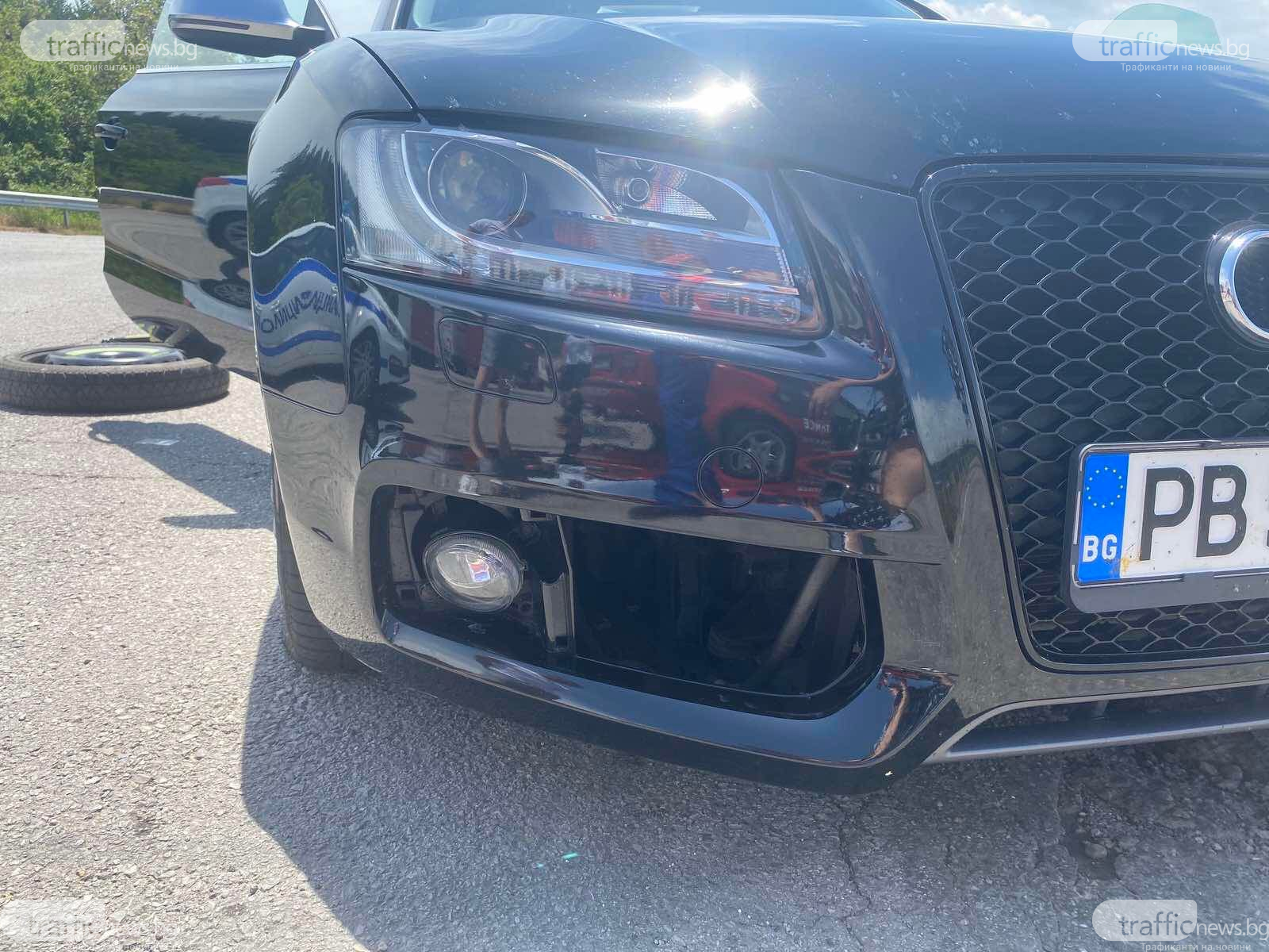 Нелеп случай на Автомагистрала Тракия претърпяха пловдивчани през днешния ден. Те пътували към София, като се движили в лява лента зад тир, който изпреварва различен тир. В момента, в който тирът, който се е движил пред тях се прибрал в дясна лента, пред техния автомобил се изпречило огромно железно парче. Шофьорът нямал време да реагира и се блъснал. За благополучие никой не потърпевш, само че по автомобила са нанесени материални вреди.