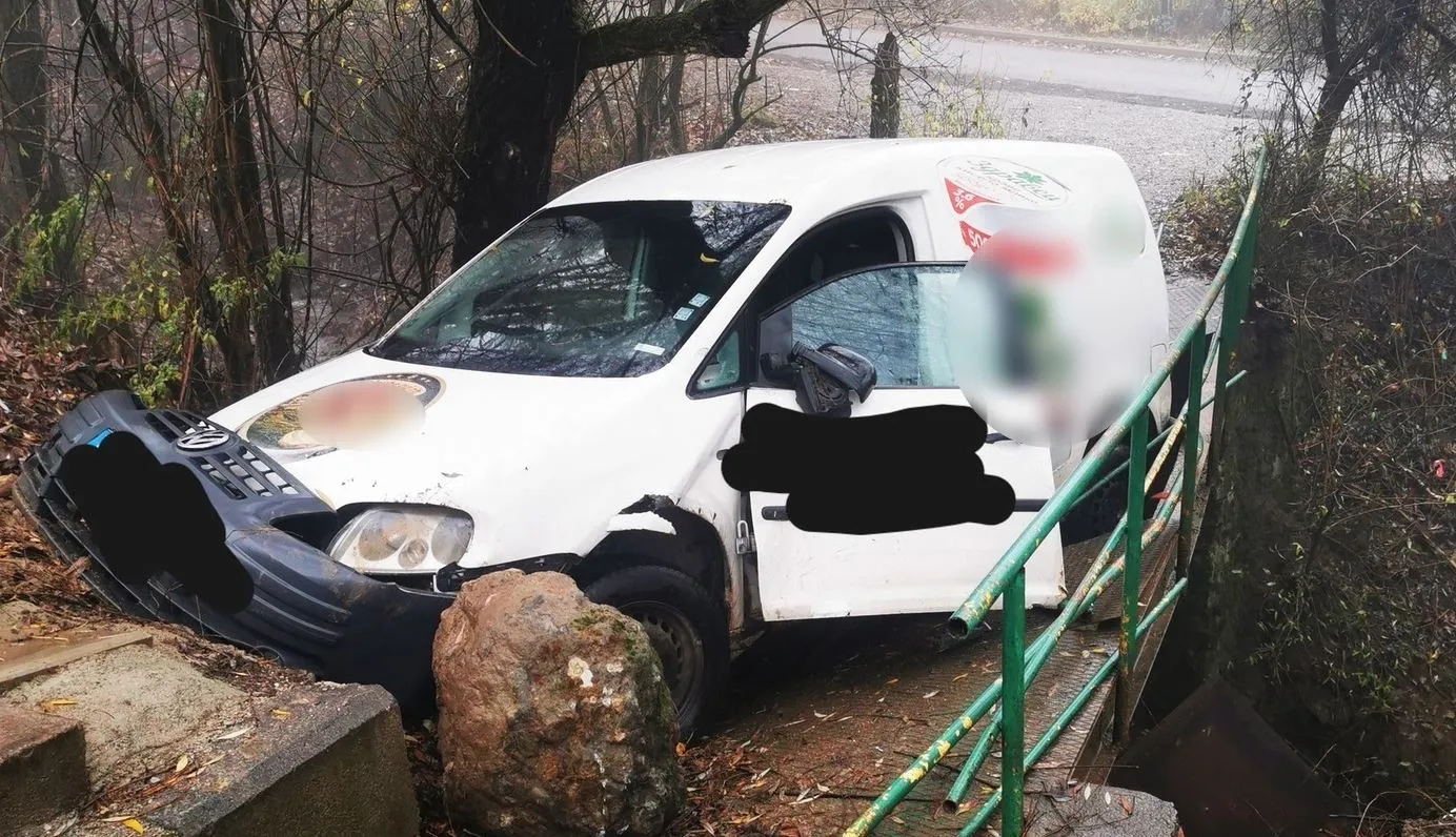 Лекотоварен автомобил се е озовал върху пешеходно мостче в квартал „ Симеоново “, което свързва улици ул. „ Горска ела “ и ул. „ Проф. Йордан Иванов “. В резултат от удара по возилото има съществени материални вреди.