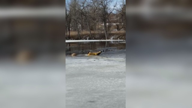 Голдън ретривърът Уотсън преследвал гъски, когато ледът под него пропаднал и се озовал в езерото. Собственикът му се обадил на телефона за незабавни случаи 911, с цел да потърси помощ и от пожарната незабавно се отзовали.