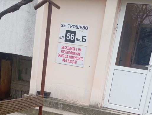 Необикновено, само че факт - " частна " беседка се появи пред роден блок. На куриозната панорама се натъкнал жител по улиците на варненския квартал " Трошево ". Върху нея бил подложен и умишлен надпис, оказващ, че е предопределена за " определени " варненци. " Частен терен! Ползва се единствено от живущи във входа! ", гласи той.