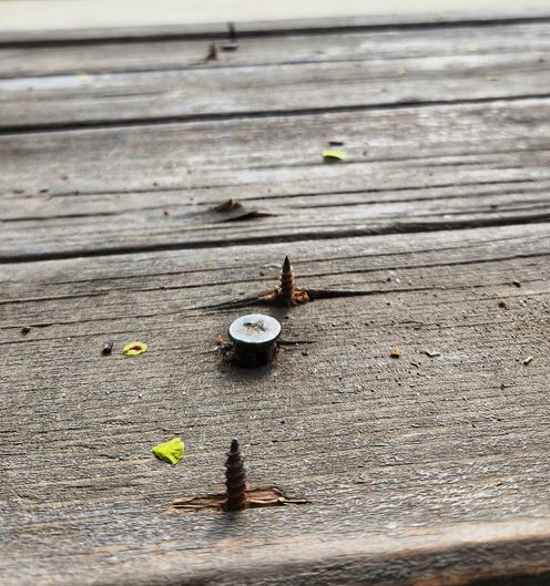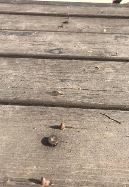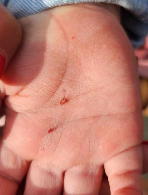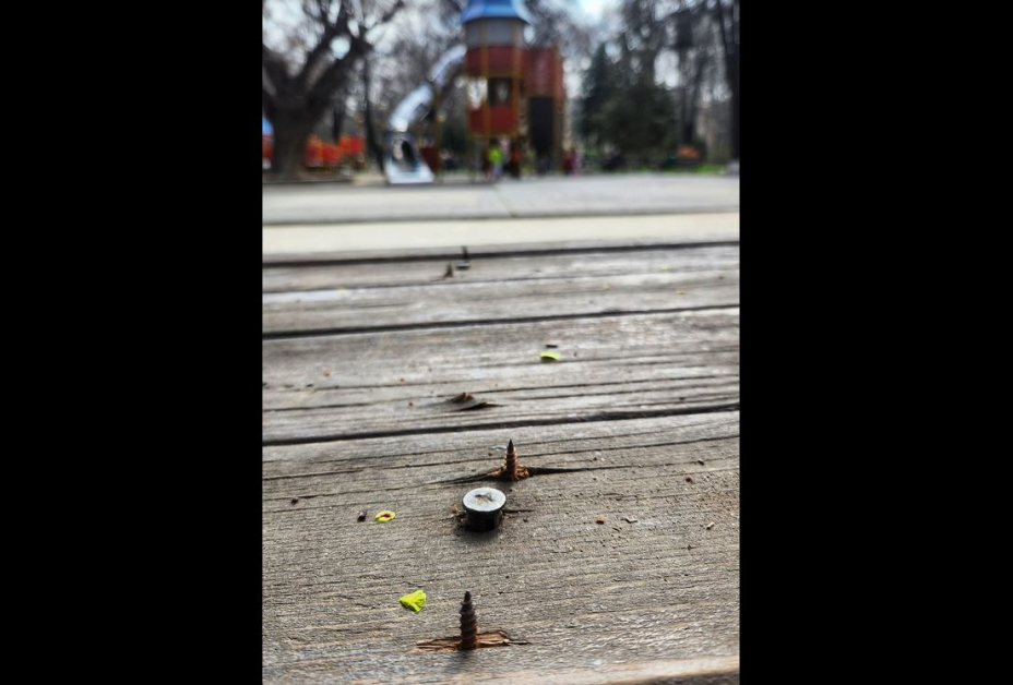 За обстановката сигнализира пловдивчанка. Тя илюстира сигнала си и със фотоси. На тях се вижда по какъв начин от дървената структура има излезли крепителни детайли, някои от които са с острата си страна нагоре. Майката споделя и фотография на ръка със следи от убождане.
