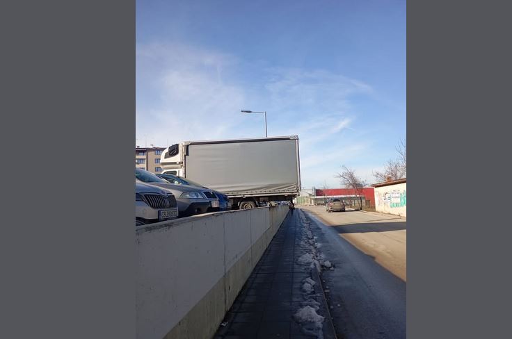 Неочаквано затруднение се изправи пред пешеходец, вървящ по улица във Велико Търново. Мъжът бил на косъм от това да удари главата си в задницата на паркиран камион. Задницата на машината се подавала от паркинга, който бил на по-голяма височина от пространството за пешеходци.