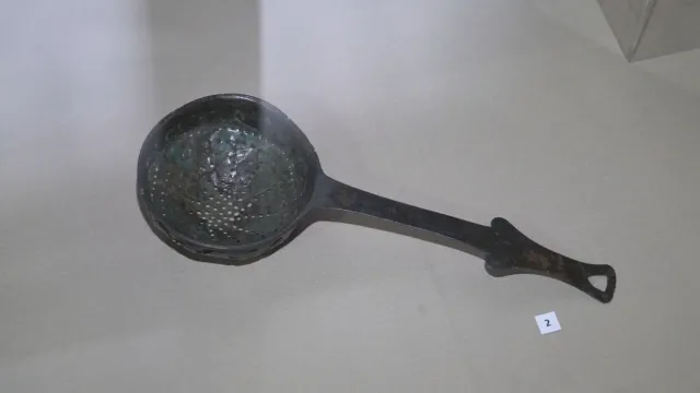 " Характерното за цедката е, че тя е претърпяла във времето ремонт. Счупила се е долната част, която е с дупките, подравнена е горната част, която е едно цяло с дръжката и ръба и по-късно е направена втора ламаринка с дупки, която е занитена по периферията на първата. Тоест даже първокласните движимост, във времето излъчени, също са ремонтирани “, разяснява археологът Мирослав Марков.