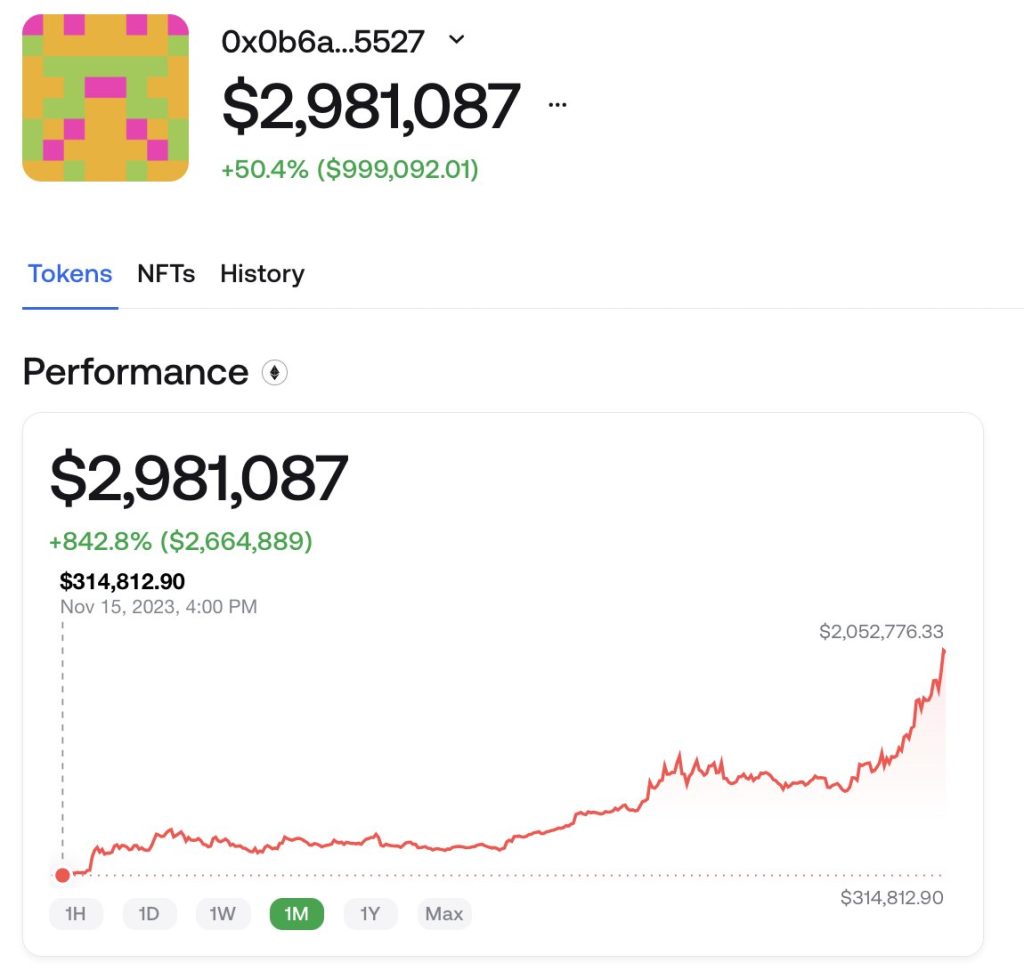 Анонимният търговец е почнал с първична инвестиция от $314,812 и доближи до стадий, в който цифровите му активи възлизат на към $3 милиона съгласно на обявата на Lookonchain от 15 декември.