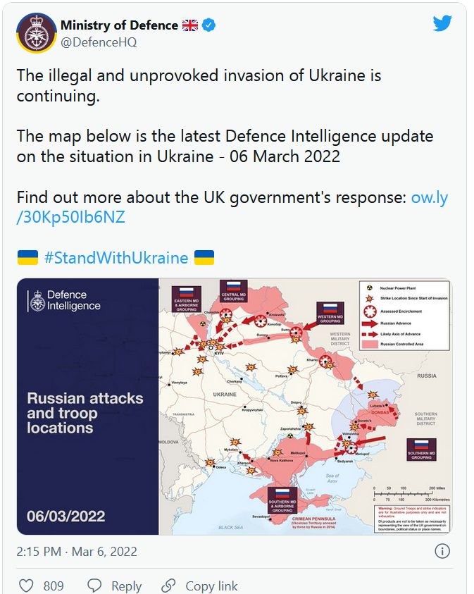 Освен всичко друго, картата демонстрира атомни електроцентрали, местата на спора от началото на нашествието, региони под съветски надзор, посоките на напредъка на съветската войска, както и вероятни бъдещи направления.
