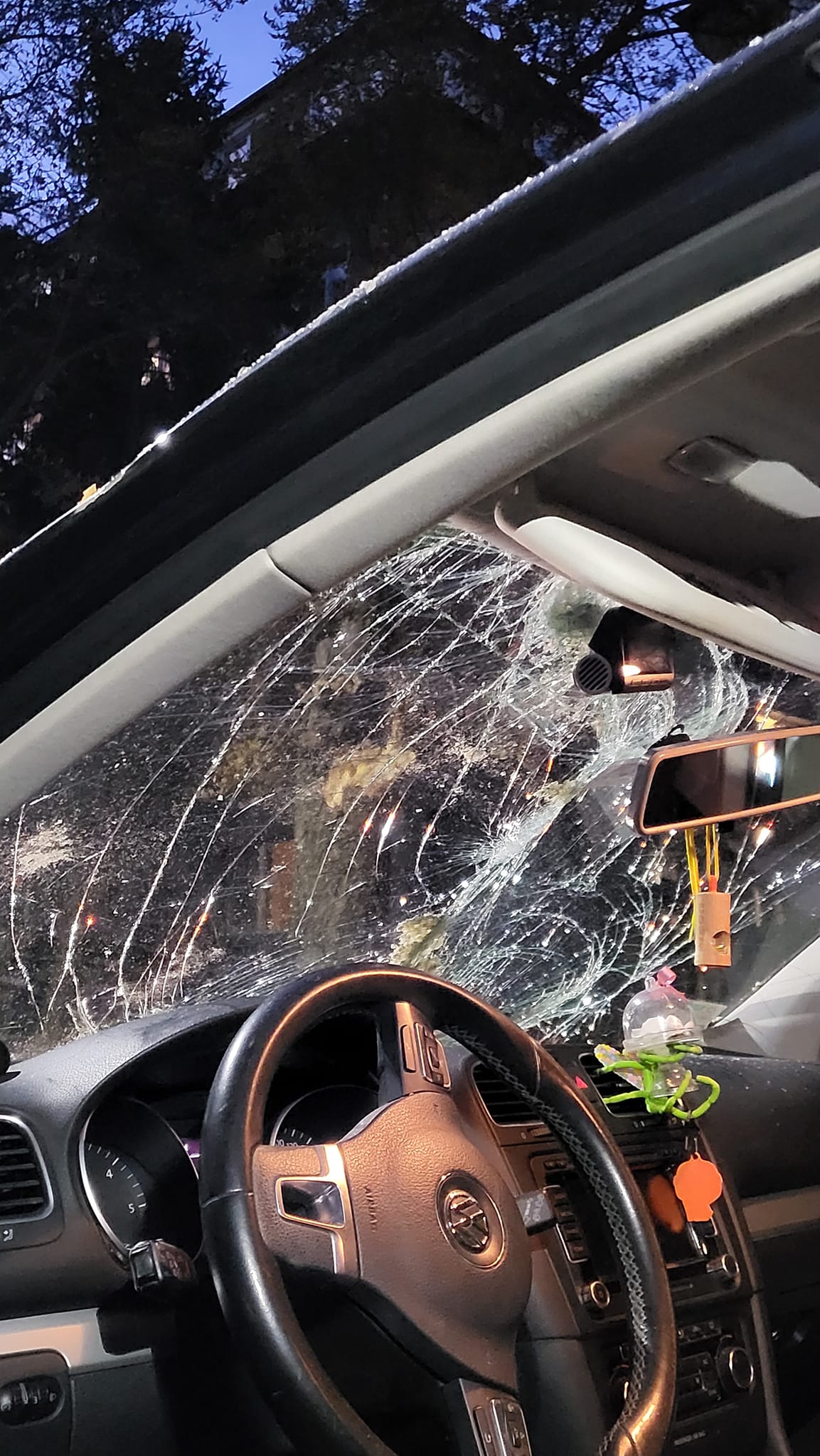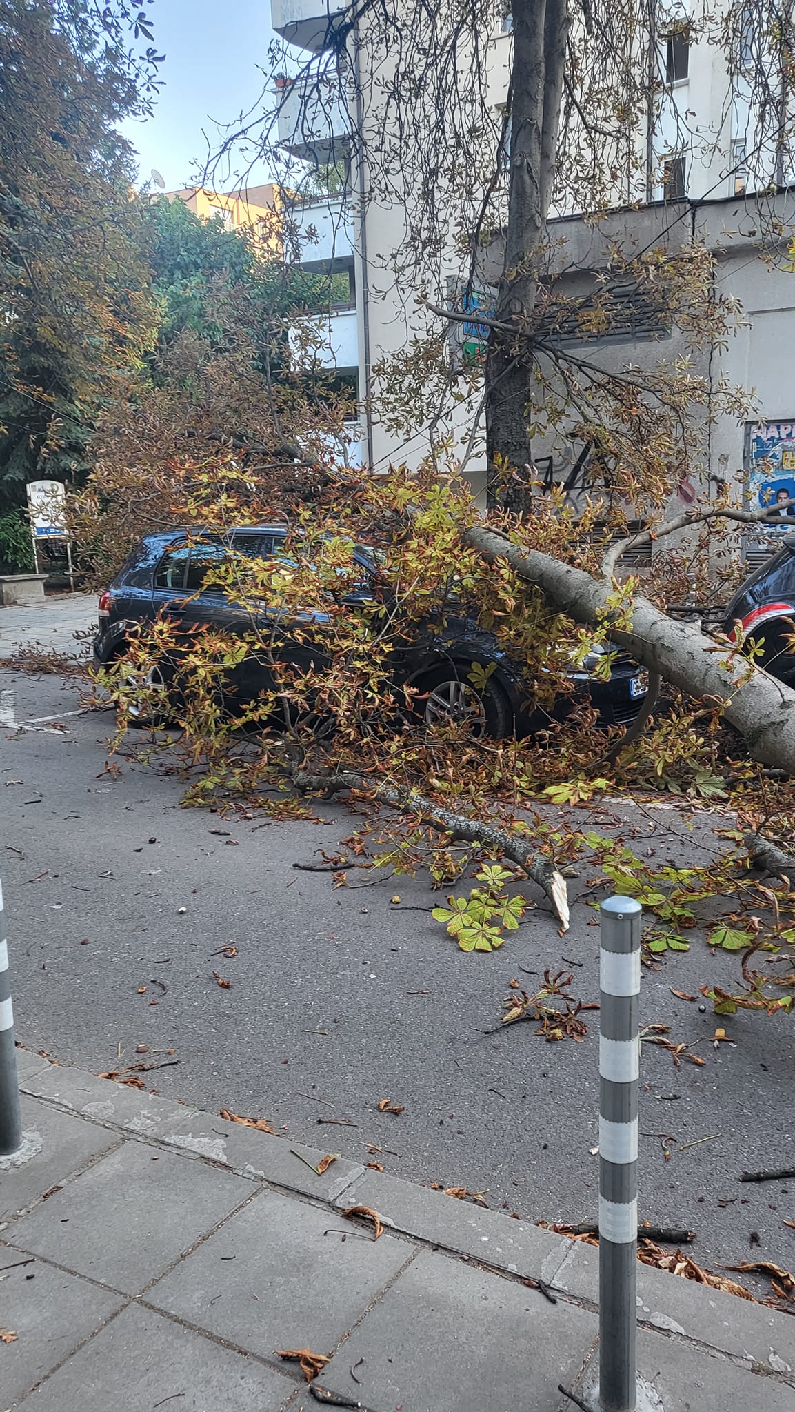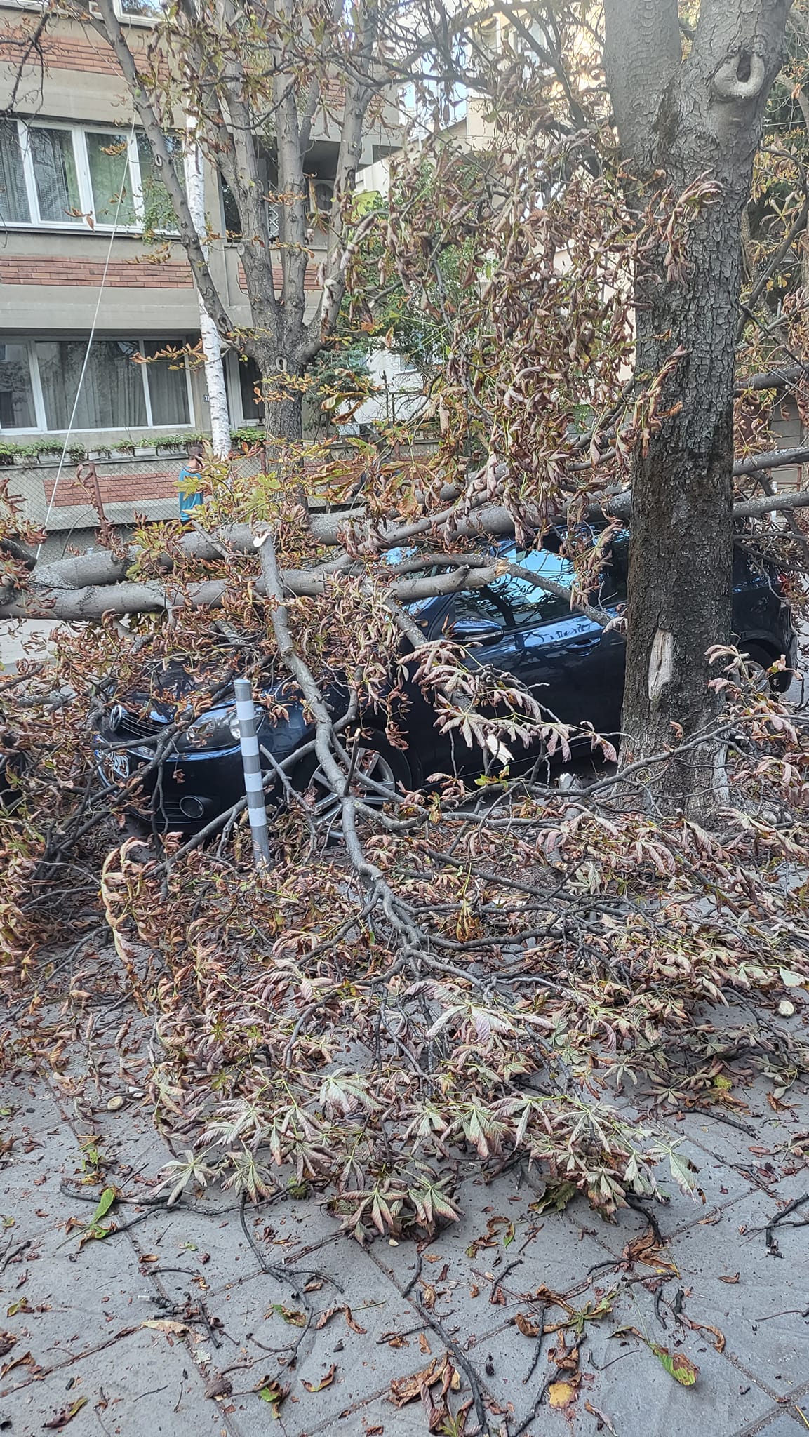 „ ВНИМАНИЕ! Здравейте, съкварталци. Пиша по противен случай. Днес към 17:50 ч на улица „ Кораб планина “ 32 падна дърво върху колата ми. Спряна пред дома ни пет минути, откакто бях паркирала и слязохме дружно с 5-годишния ми наследник. В момента на рухването мъжът ми и други хора, измежду които и майка с малко дете, са в радиус от 5 м от дървото. Щастливи сме, че всички сме здрави и невредими и няма потърпевши хора. Не мога да си обясня по какъв начин общината оставя сухи и големи дървета да падат просто по този начин върху тротоари и коли. Не желая да си представям какво би се случило, в случай че въпросното дърво беше уцелило човек. Съседи са пускали тъжби, че е рисково. Пазете се и пазете децата си, тъй като явно никой от органите не се интересува за нашата сигурност пред домовете ни. Лека и спокойна вечер на всички, “ написа дамата.