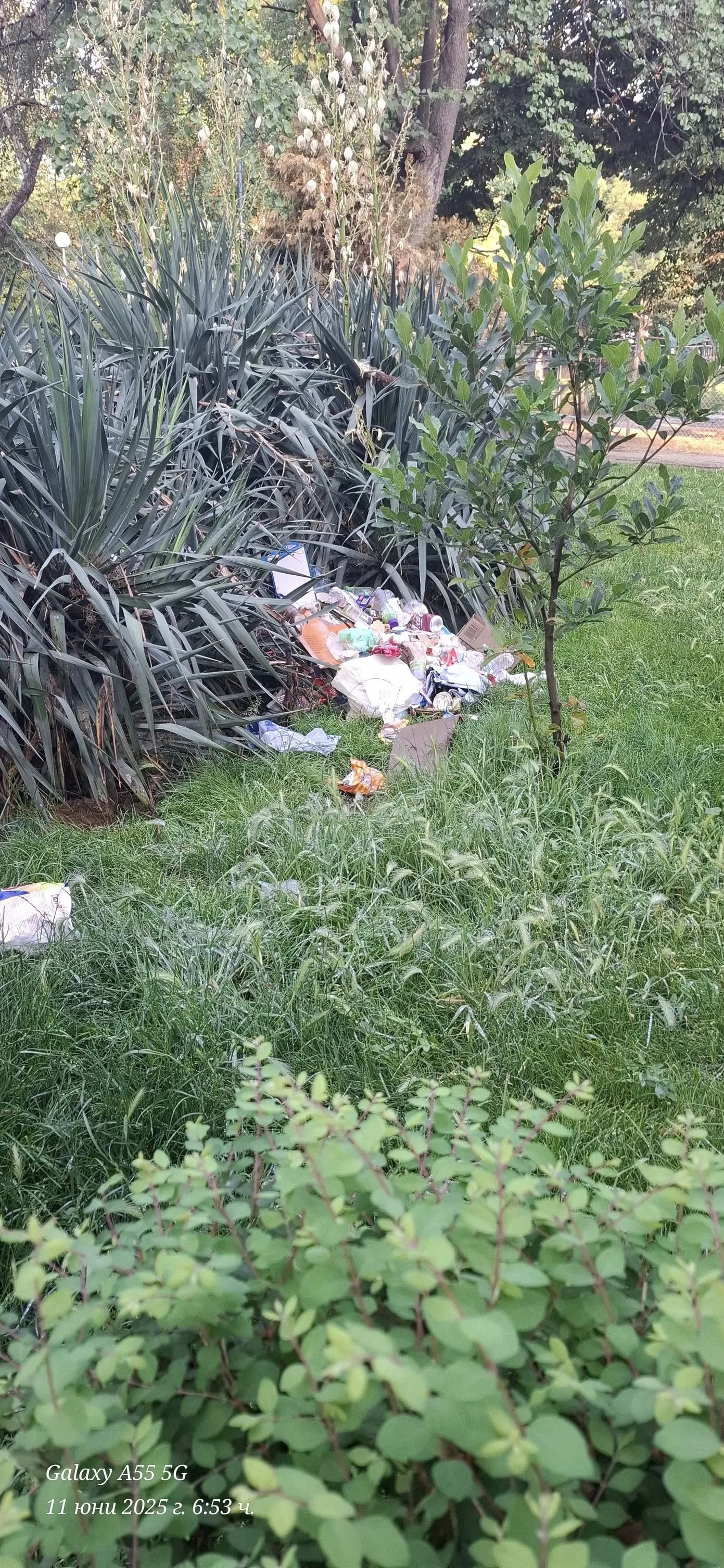 Неприятна панорама посреща минувачите в парка до учебно заведение „ Димитър Талев “ в Пловдив – изсипан отпадък, разпилени опаковки от храна, пластмасови бутилки и даже облекла са захвърлени напряко върху тревата и сред храстите. Мястото, където играят деца и се разхождат родители, наподобява повече като нерегламентирано бунище, в сравнение с като социална зелена зона.