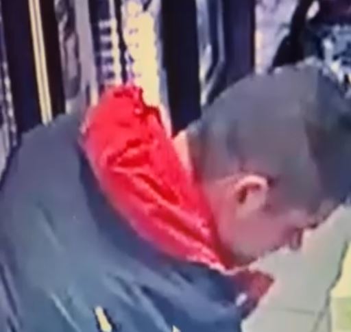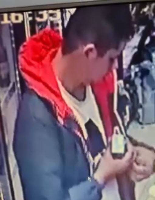 " Внимание! Крадци ", написа Керан Г. Тя споделя фрагменти, на които се вижда мъж, който прибира стока в джоба на якето си.