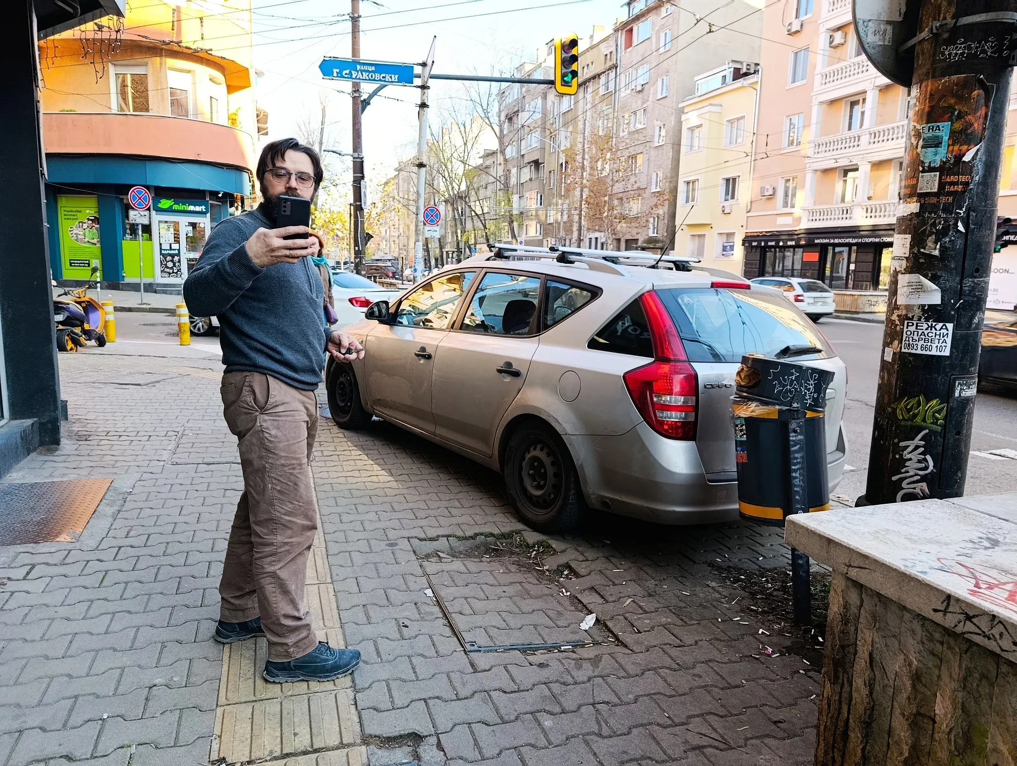 Господинът ме снима, да не остане по-назад, казвайки, че съм била доста хубава. Стоя близо 20 минути безпроблемно паркиран там, даже след подаден сигнал! "