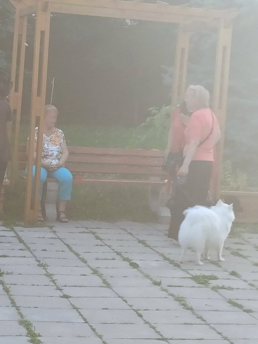 " Детето беше в суматоха, аз също бях в суматоха, виках по кучето и старата му господарка да го върже. Тя на няколко пъти го хващаше за каишката и по-късно отново го пускаше, а то незабавно започваше отново да гони детето ми! Чак когато някак хванахме изплашеното и в цялостен шок дете с дядо му и го отведохме на известно разстояние, се върнах трепереща да фотографирам дамите и кучето, само че фотографията е извънредно размазана ", прибавя още Ирина.