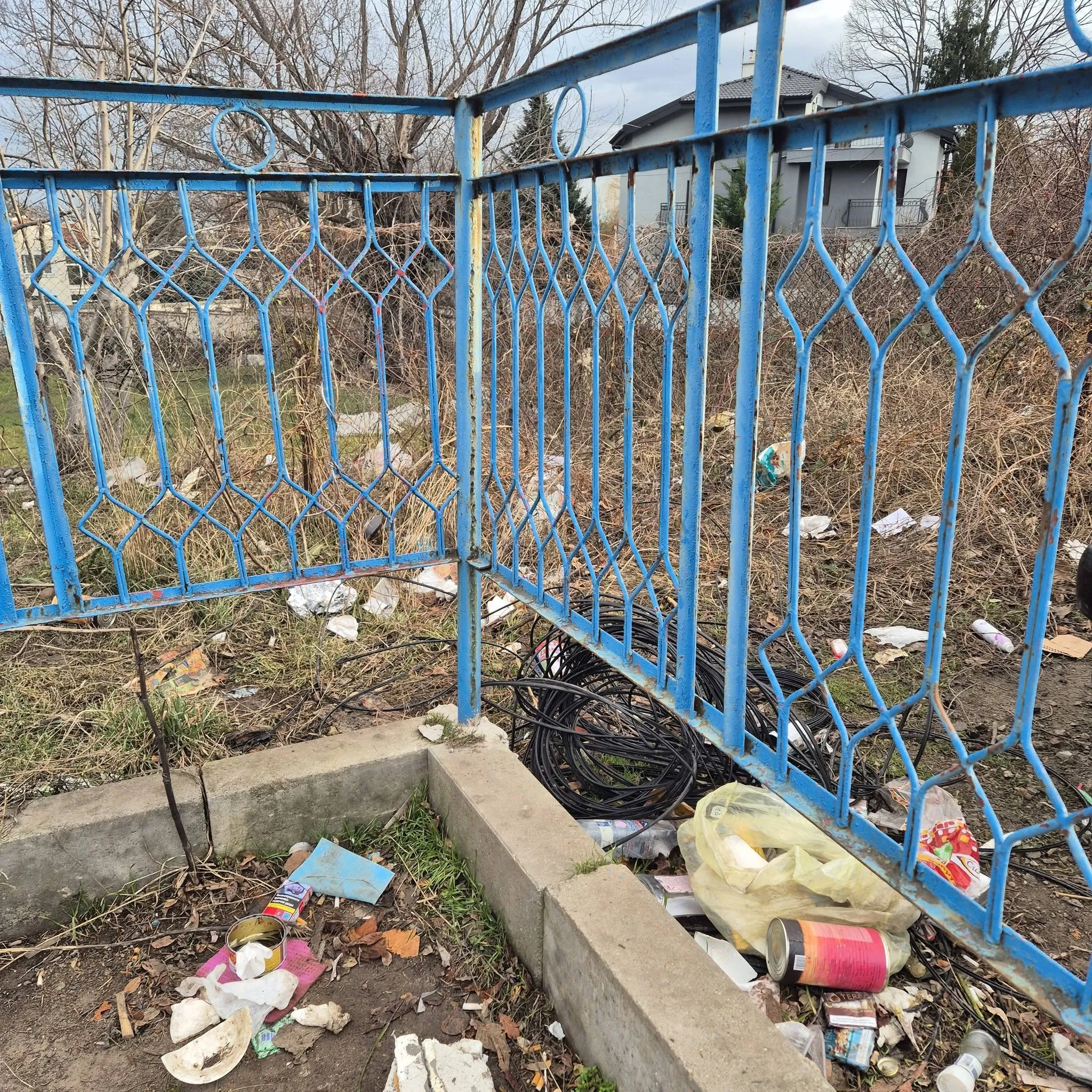 Нерегламентирано бунище се е образувало наоколо до задния вход на 52 ОУ в София - на кръстовището на улиците „ Боянска река “ и „ Десислава “.