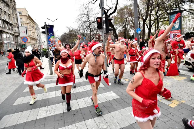 Нестандартен Коледен маратон в Будапеща. Десетки хора с празнични бански се включиха в гола конкуренция макар студеното време.