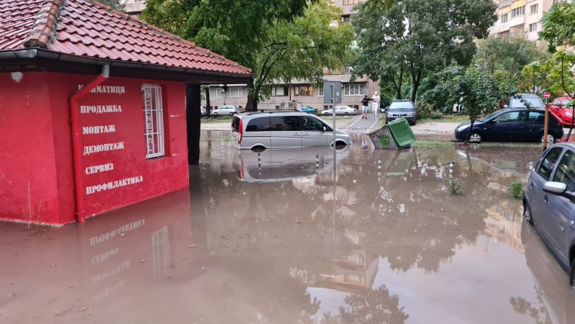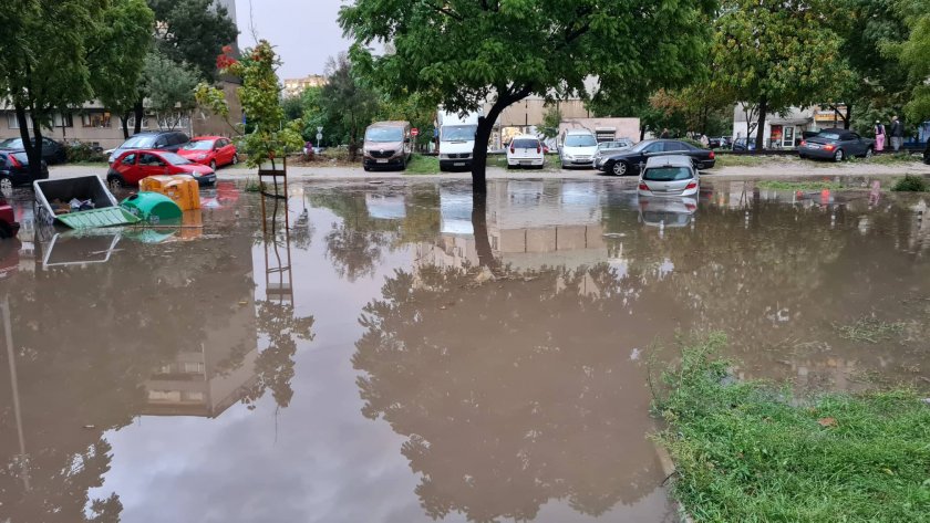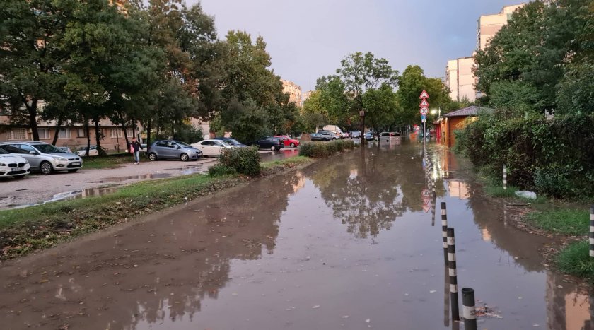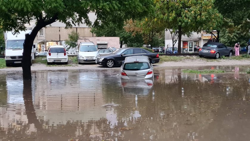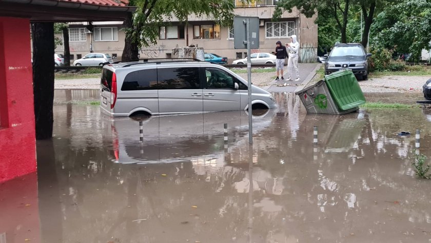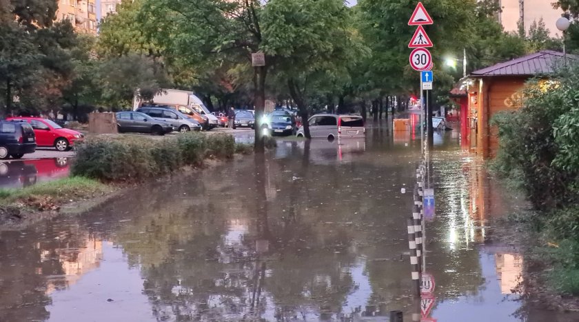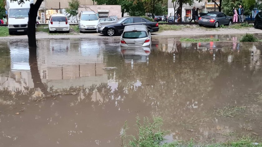 Читател на Lupa.bg изпрати фотоси от наводнения бул. „ Вардар “ в кв. „ Красна поляна “, на които се вижда, че водата доближава до вратите, а някъде и до прозорците на колите.
