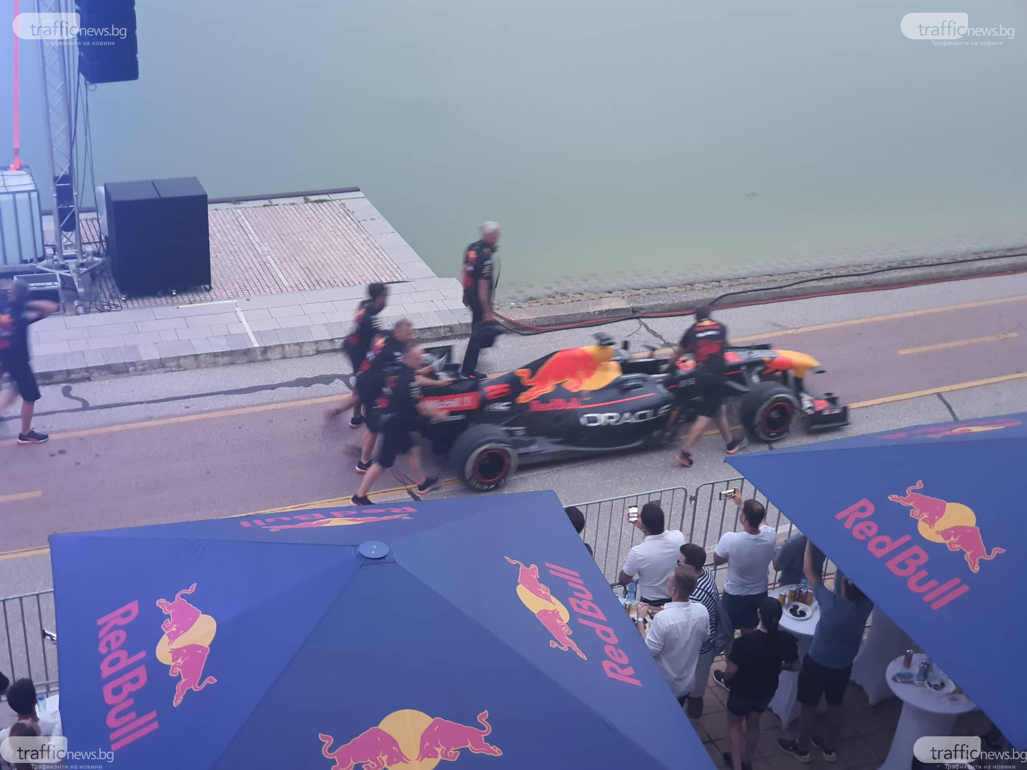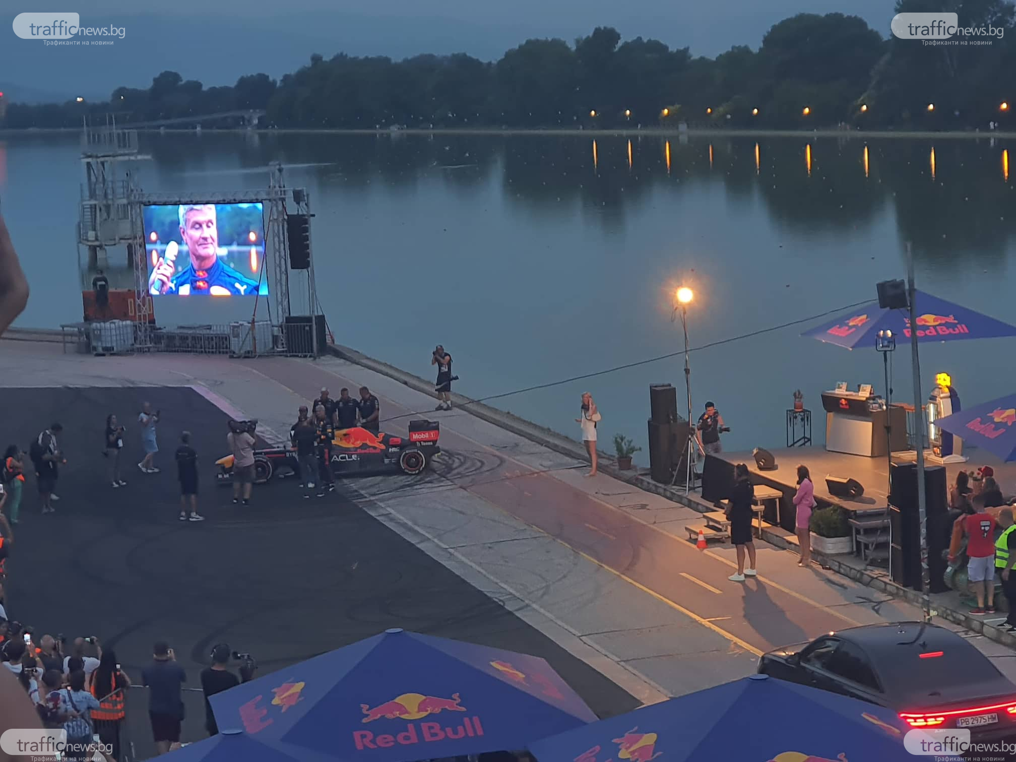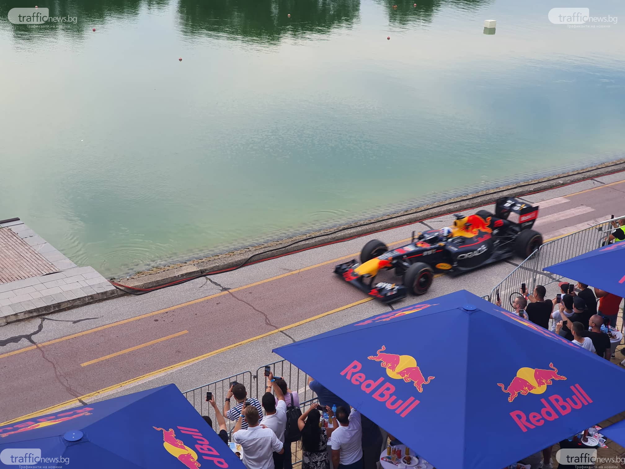 Алеята на Гребната, едно от обичаните места за разходка и спорт, се прероди в писта на Формула 1. По нея свистя елегантен болид, ръководена от именития водач Дейвид Култард. Припомняме, че асът няколко дни поред загатваше на пловдивчани какво шоу следва. На разнообразни точки в града той показва уменията си, а мощността и визията на скоростна кола RB7 впечатляваше дребни и пораснали.