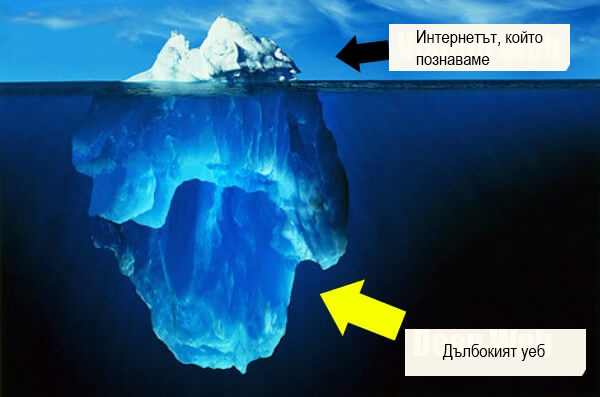 Какво съставлява този бездънен уеб или дълбока мрежа? Представете си айсберг, който плува в океана. Горната част – тази, която се вижда на хоризонта, е построена от всички уеб сайтове в интернет, които познавате и ползвате всеки ден. Google, Facebook, Ютуб, Туитър, всички конгреси, всеки информативен уебсайт. На съвсем всички е ясно обаче, че в действителност айсбергът не е остров, плуващ в океана – той е солидна конструкция, която е доста по-голяма в дълбините на водата, в сравнение с наподобява.