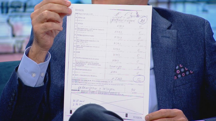 " В 44-тата минута от видеозаписа две ръчички броят протоколите. И споделят за номер 28 - 14. Но както виждате написа 0 отразени ".