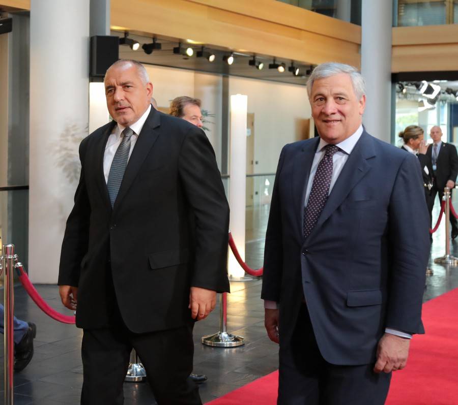 Преди да влезе в пленарната зала министър председателят Бойко Борисов беседва с ръководителя на Европейския парламент Антонио Таяни.