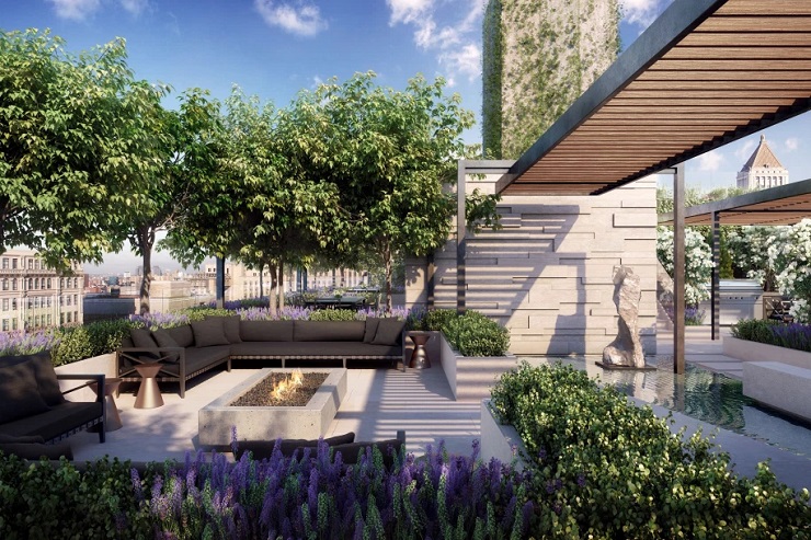 Сградата разполага и с впечатляваща градина и място за отдих на покрива, откъдето гледката е спираща дъха.