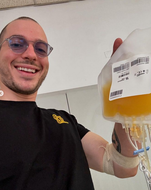 Гологлавият чаровник подарява тромбоцити, от които имат потребност доста онкоболни в България. Комикът прикани и своите почитатели да създадат този доблестен акт.