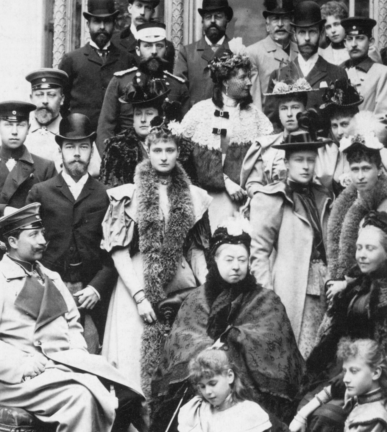 На фотографията по-долу те са уловени дружно. От ляво на дясно: Александра Фьодоровна, императрица на Русия; дребната велика княгиня Олга; Николай II, британската кралица Виктория; и Албърт Едуард, принц на Уелс.
