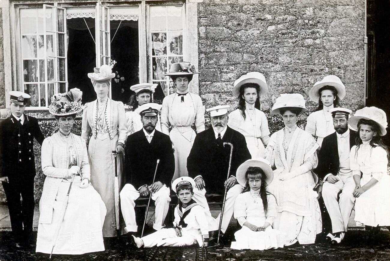 По-долу те са облечени с немски военни униформи. Снимката е от 1913 година в Берлин, тъкмо преди Първата международна война. Управниците на три страни, присъединили се във войната, се оказват родственици: немският император Вилхелм II е първи братовчед на крал Джордж V и брачната половинка на Николай II императрица Александра.